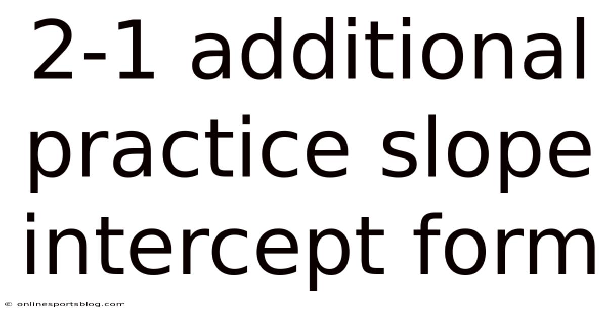 The slope‑intercept form is one of the most fundamental ways to represent a linear equation in algebra. Written as y = mx + b, this format instantly reveals the gradient (or slope) m of the line and the point where the line crosses the y‑axis (the y‑intercept b). Mastery of this form enables students to graph lines quickly, interpret real‑world relationships, and solve systems of equations efficiently. This article provides a clear explanation of the form, outlines the steps to convert any linear equation into slope‑intercept format, and offers a set of 2‑1 additional practice problems with detailed solutions. By working through these exercises, learners will reinforce their understanding and gain confidence in manipulating linear equations.