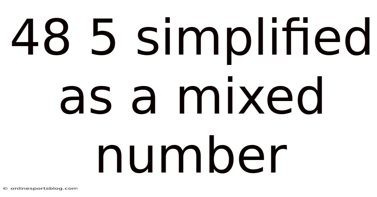 Understanding how to simplify fractions and convert them into different forms is a fundamental skill in mathematics. One of the most common conversions involves changing an improper fraction into a mixed number, which combines a whole number with a proper fraction. Even so, the expression "48 5 simplified as a mixed number" refers to the fraction 48/5 and the process of rewriting it in a more readable format. This conversion is not just a mechanical exercise; it provides clarity in measurements, cooking, construction, and various real-world applications where whole units and partial units are distinct. By breaking down the numerator in relation to the denominator, we can express the value as a combination of complete parts and a remainder.