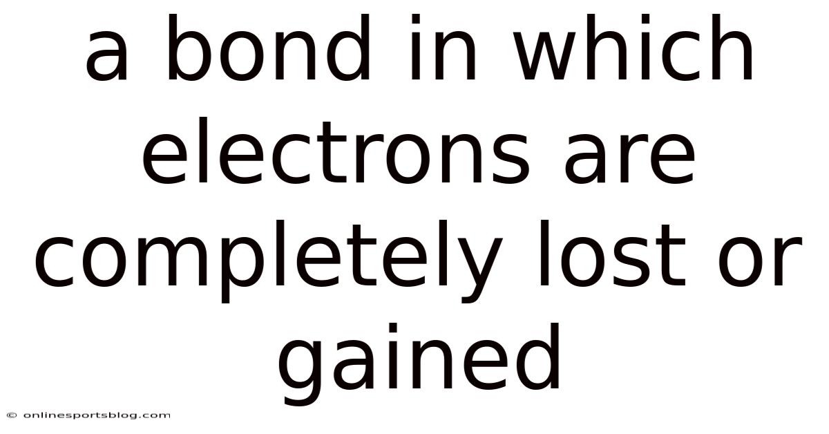 When atoms approach each other, they can either share electrons or transfer them entirely. Now, in a bond in which electrons are completely lost or gained, the transfer is total: one atom donates one or more electrons, while another atom accepts them. Plus, the donor becomes a cation (positively charged ion), and the acceptor becomes an anion (negatively charged ion). Worth adding: the resulting electrostatic attraction between these oppositely charged ions holds them together in a crystalline lattice. This article explores the mechanics of electron transfer, the conditions that favor it, the energy changes involved, and common misconceptions.