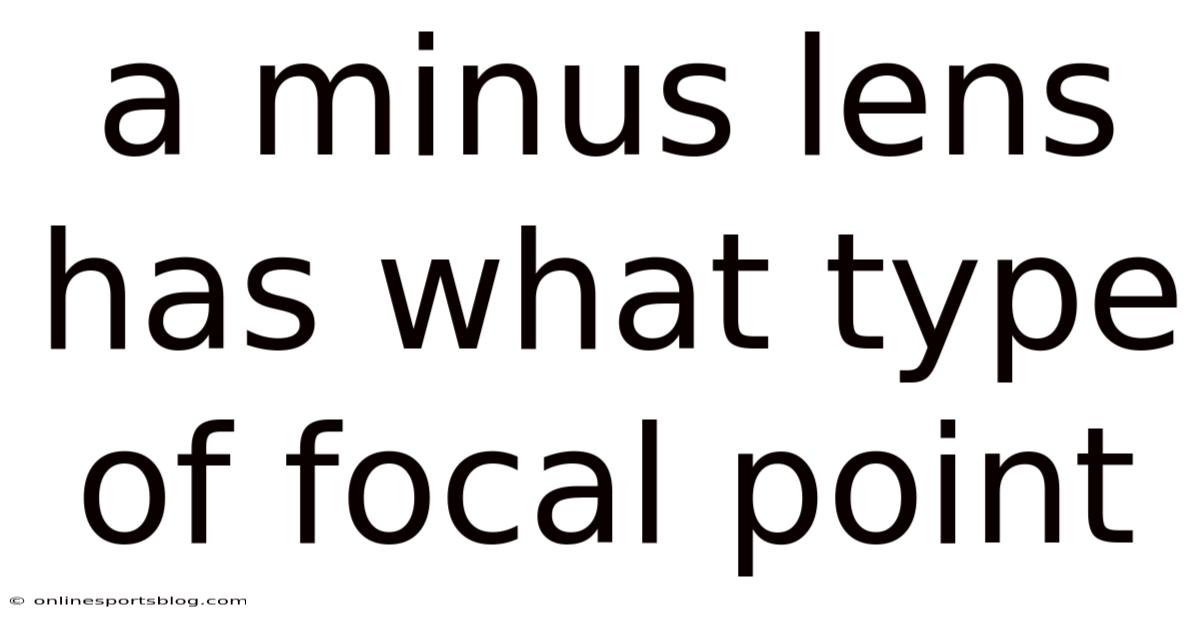 When studying optics, one of the fundamental concepts students encounter is the distinction between different types of lenses and their focal properties. Because of that, a minus lens, also known as a concave or diverging lens, possesses a unique characteristic that sets it apart from its counterpart—the plus lens. Think about it: understanding the focal point of a minus lens is essential for anyone studying physics, optometry, or working with optical instruments. This article will explore in detail what type of focal point a minus lens has, how it works, and its practical applications.