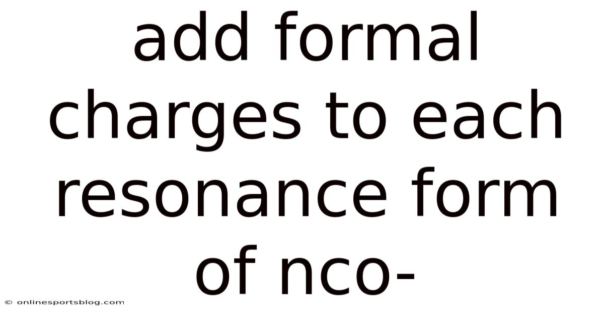 To add formal charges to each resonance form of NCO⁻, we first need to draw all possible valid Lewis structures. The NCO⁻ ion has 16 valence electrons (5 from nitrogen, 4 from carbon, 6 from oxygen, plus 1 extra electron due to the negative charge). The most common resonance forms involve shifting the double bond between carbon and oxygen or carbon and nitrogen Which is the point..