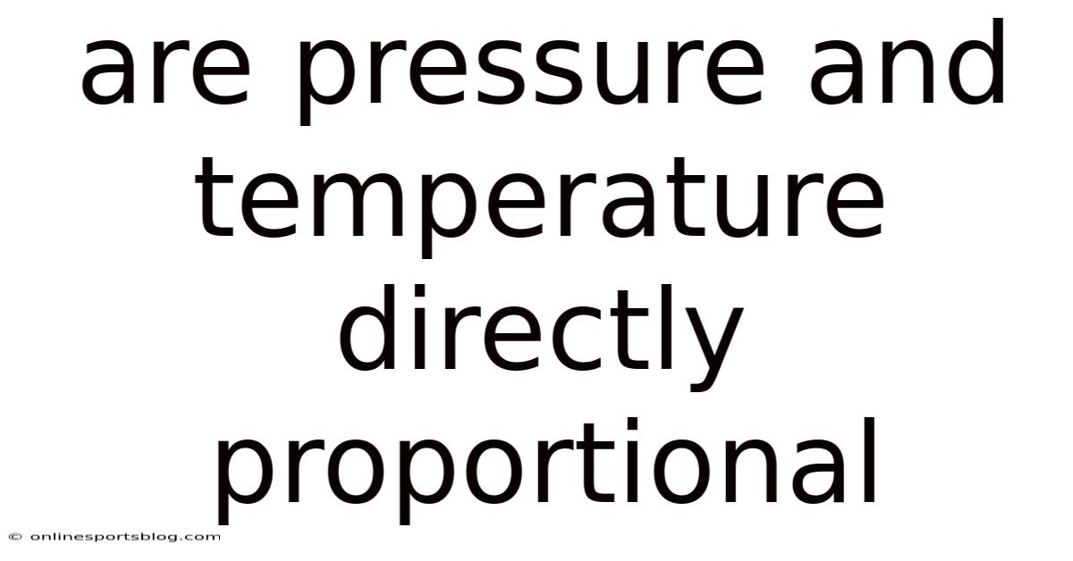 Pressure and temperature are two fundamental concepts in physics that are closely related in many natural and engineered systems. Here's the thing — understanding their relationship is crucial for students, engineers, and scientists alike. The question of whether pressure and temperature are directly proportional is a common one, and the answer depends on the specific conditions under which the system is operating. In this article, we will explore the relationship between pressure and temperature, examine the scientific principles that govern their interaction, and provide practical examples to help clarify this important topic Small thing, real impact..