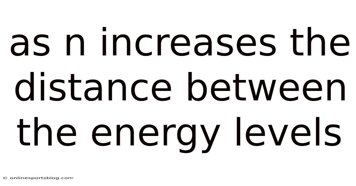 The concept of energy levels in atoms is foundational to understanding atomic structure and quantum mechanics. That's why when we refer to "as n increases, the distance between energy levels," we are exploring how the principal quantum number n—a quantum number that defines the energy state of an electron in an atom—affects the spacing between these levels. In real terms, this relationship is critical in fields ranging from atomic physics to quantum chemistry, as it influences phenomena like spectral lines, electron transitions, and even technological applications such as lasers. That said, the term "distance" here can be interpreted in two ways: either as the energy difference between consecutive levels or the spatial separation of orbitals in models like the Bohr model. This article clarifies both interpretations, explaining why the distance between energy levels changes as n increases and why this distinction matters.