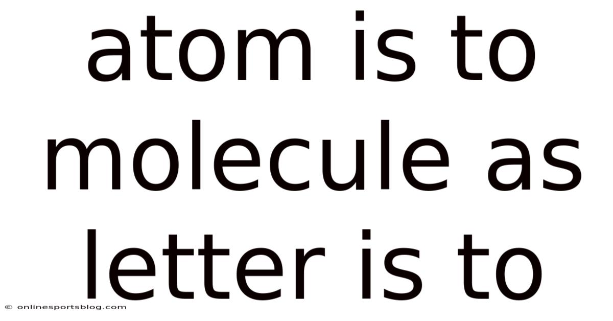 The analogy "atom is to molecule as letter is to word" is a powerful way to understand the relationship between fundamental building blocks and the structures they form. Consider this: just as atoms are the basic units of matter that join together to form molecules, letters are the foundational elements of language that come together to create words. At its core, this comparison highlights how smaller, individual components combine to create something more complex and meaningful. This analogy not only simplifies abstract scientific concepts but also draws a parallel between the physical and linguistic worlds, making it easier to grasp how complexity arises from simplicity Which is the point..