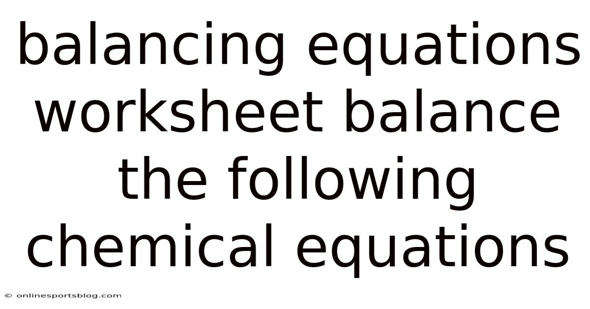 Mastering the skill of balancing chemical equations is a fundamental requirement for anyone studying chemistry, as it transforms abstract symbols into a precise representation of matter conservation. A balancing equations worksheet serves as the primary training ground for this skill, providing structured exercises that range from simple diatomic molecules to complex redox reactions. That said, this law dictates that atoms are neither created nor destroyed in a chemical reaction, meaning the quantity of each element must remain identical on both sides of the reaction arrow. The core principle behind every exercise is the balance the following chemical equations directive, which challenges students to apply the law of conservation of mass. Successfully navigating these worksheets requires a systematic approach, a deep understanding of atomic behavior, and the patience to troubleshoot common errors Simple, but easy to overlook..