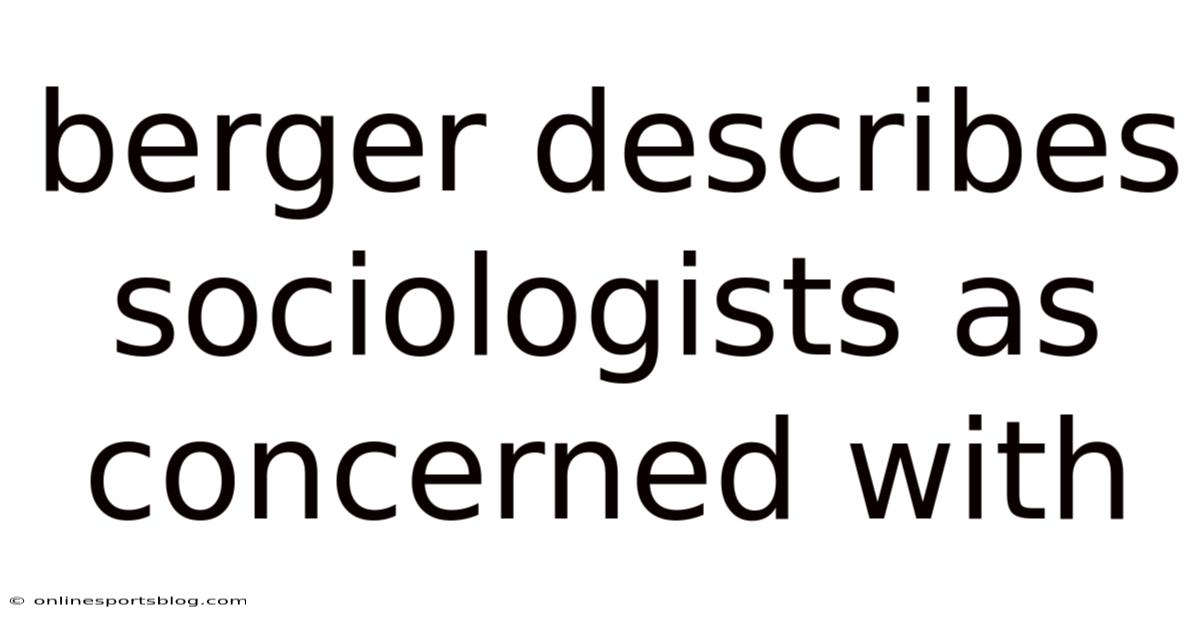 Berger Describes Sociologists As Concerned With