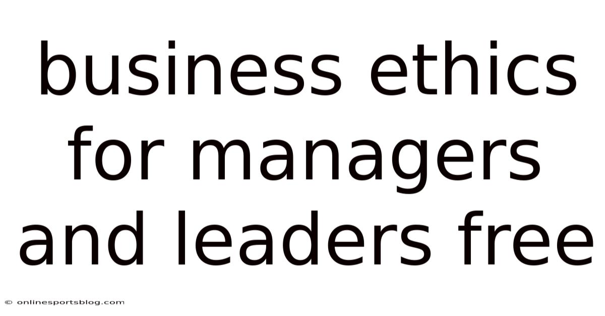 Business Ethics For Managers And Leaders Free