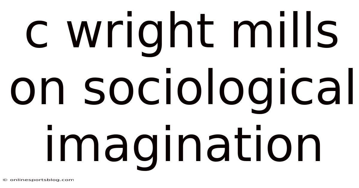 Pulling it all together, C. Even so, by encouraging individuals to ask “how does my story fit into the bigger picture? Day to day, ” the imagination transforms passive observation into active understanding. On top of that, wright Mills’ sociological imagination offers a powerful lens for interpreting the interplay between personal experiences and larger social forces. This shift not only enriches personal insight but also cultivates a more informed citizenry capable of engaging thoughtfully with the challenges of modern life. Embracing this perspective equips readers to move beyond isolated grievances and to recognize the structural patterns that shape our collective destiny. The bottom line: the sociological imagination is more than just a theoretical framework; it is a vital tool for fostering empathy, promoting social justice, and building a more equitable and sustainable future for all.