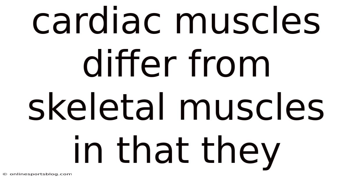 Cardiac muscles differ from skeletal muscles in that they are specialized tissues designed for continuous, rhythmic contractions that sustain life. Unlike skeletal muscles, which are under voluntary control and used for movement, cardiac muscles operate involuntarily and are responsible for pumping blood throughout the body. This fundamental difference in function is reflected in their unique structure and properties Surprisingly effective..
