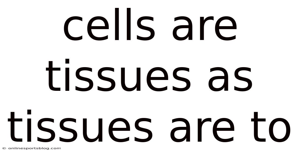 The simple statement cells are to tissues as tissues are to organs serves as a gateway to understanding the remarkable architecture of life. Whether you are a student preparing for exams, an educator designing lessons, or simply a curious mind exploring how the body works, mastering this hierarchy will strengthen your scientific literacy. Keep asking questions, trace the connections between structure and function, and remember that every complex system begins with a single, well-organized building block. On the flip side, by recognizing how microscopic components collaborate to create macroscopic systems, you develop a deeper appreciation for the resilience, adaptability, and precision of living organisms. The more you explore these relationships, the more biology transforms from a collection of facts into a living, breathing story of cooperation and design.