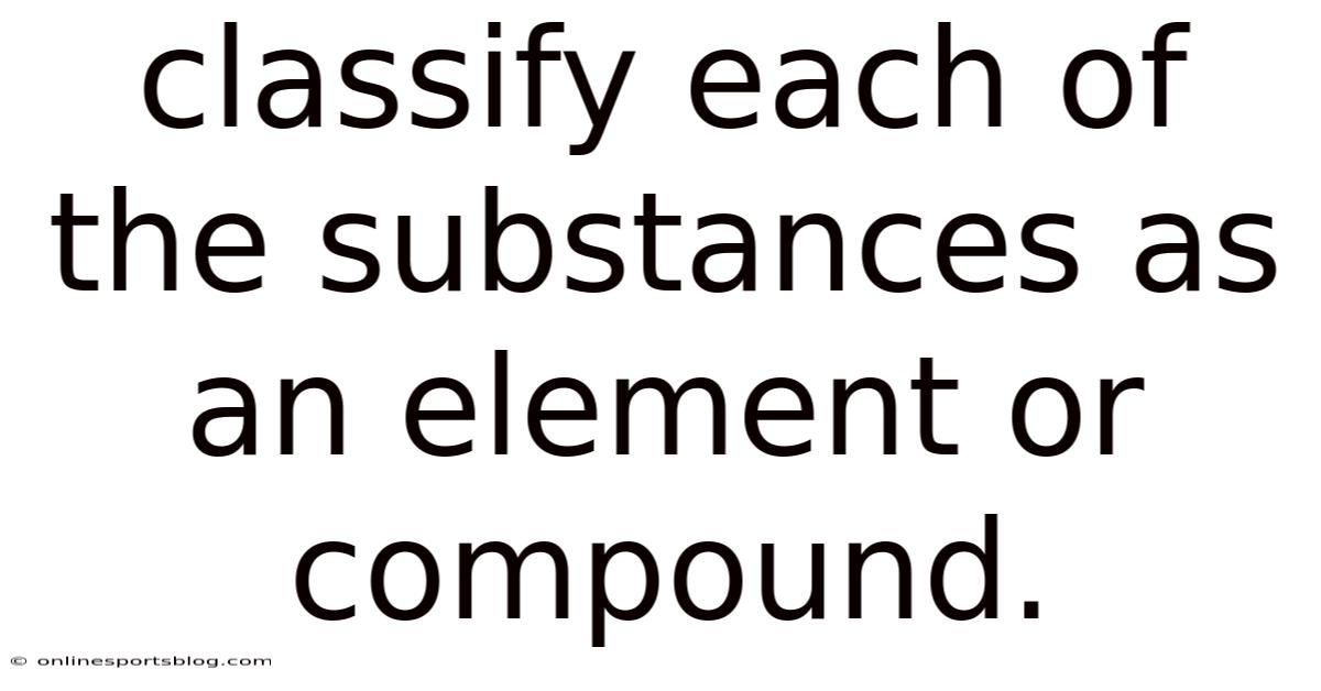 Understanding the classification of substances as elements or compounds is a fundamental concept in chemistry that shapes how we interact with the world around us. Whether you're a student, teacher, or curious learner, grasping this distinction can transform the way you approach experiments, reactions, and everyday applications. This article looks at the key principles behind classifying substances, helping you build a solid foundation in chemical science Less friction, more output..
