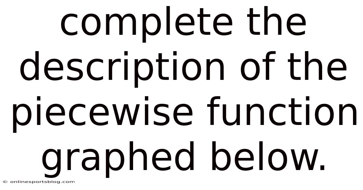 The piecewise function graphed belowdescribes a mathematical model where different expressions govern the output across distinct intervals of the input variable, typically denoted as x. Understanding how to complete its description requires careful analysis of the visual representation, identifying the specific equations for each segment and precisely defining the boundaries where they apply. This process is fundamental in mathematics, engineering, and various scientific fields where behavior changes under different conditions.