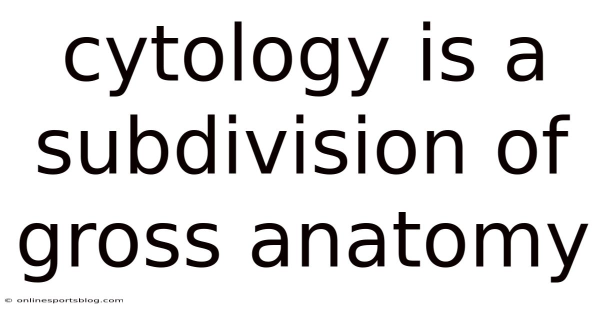 The statement that cytology is a subdivision of gross anatomy is a common misconception that frequently appears in introductory biology and medical coursework. Now, while gross anatomy examines structures visible to the naked eye, cytology explores the microscopic realm of individual cells, their internal components, and their pathological transformations. In reality, cytology and gross anatomy represent two distinct but deeply interconnected branches of anatomical science, each operating at fundamentally different scales of biological observation. Worth adding: understanding how these disciplines are classified, where they diverge, and how they ultimately converge is essential for students, healthcare professionals, and anyone seeking a accurate grasp of human biology. This article clarifies the scientific hierarchy of anatomical studies, corrects common classification errors, and demonstrates why both macroscopic and microscopic perspectives are indispensable to modern medicine and scientific education.