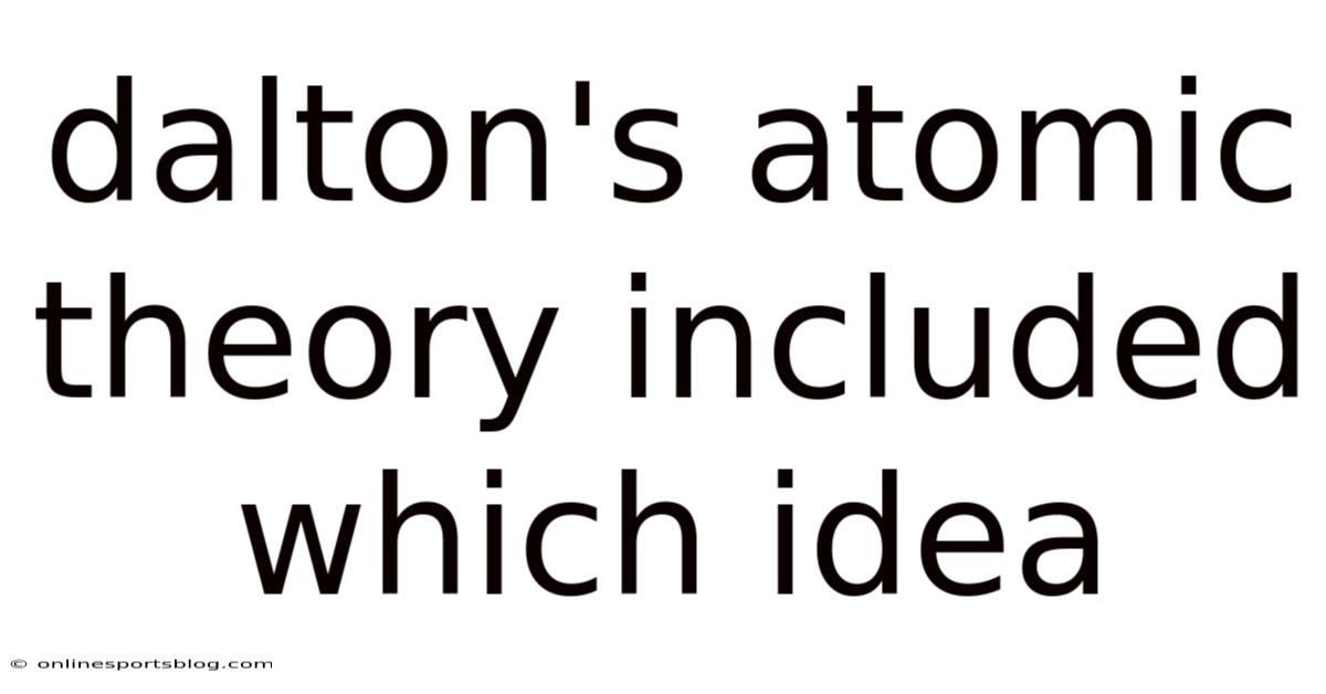 One of the most significant ideas included in Dalton's atomic theory was that atoms of different elements combine in simple, whole-number ratios to form compounds. This postulate explained the law of definite proportions, which stated that a compound always contains the same elements in the same proportions by mass.