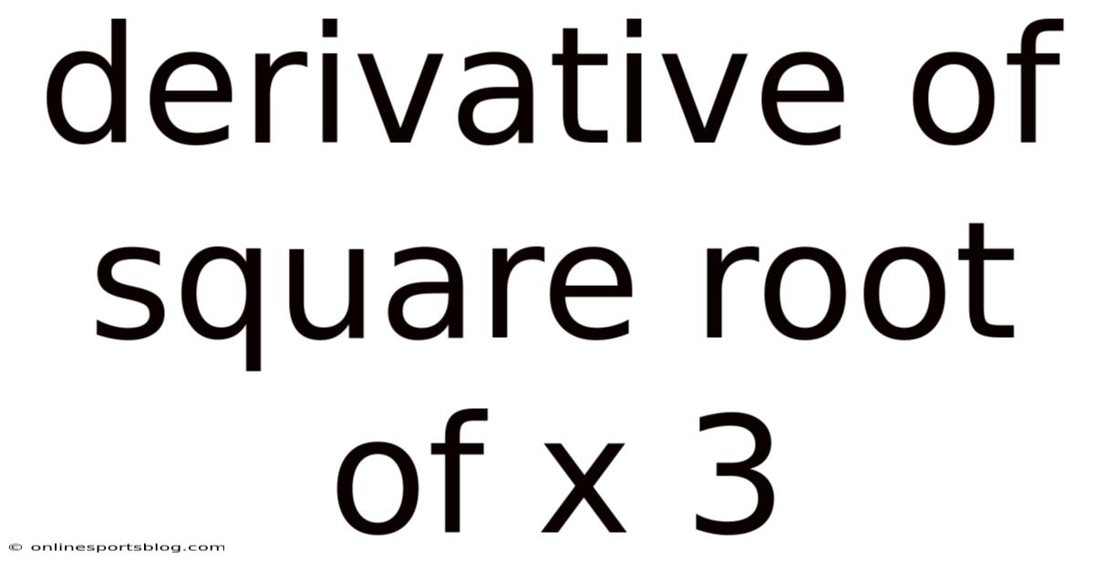Understanding the derivative of the square root function raised to the third power is a fundamental task in calculus that opens the door to deeper mathematical exploration. When we look at this topic, we uncover not just a formula but a powerful tool for analyzing rates of change in real-world scenarios. The square root of x, often denoted as √x, is a function that grows gradually as x increases, and its behavior becomes even more intriguing when we apply the power rule of differentiation. This article will guide you through the process step by step, ensuring you grasp the concepts clearly and apply them effectively Practical, not theoretical..