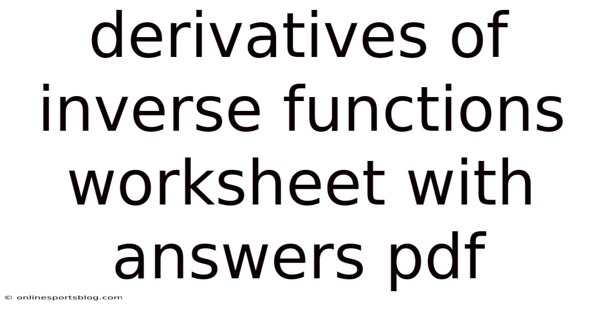 Understanding derivatives of inverse functions is a crucial concept in calculus that allows us to explore the relationship between a function and its inverse. In practice, this worksheet provides a full breakdown to practicing and mastering the techniques involved in finding the derivatives of inverse functions. By working through these problems, students can enhance their problem-solving skills and deepen their understanding of calculus Worth keeping that in mind..