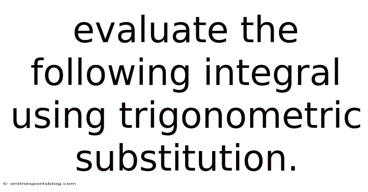 Evaluate The Following Integral Using Trigonometric Substitution.