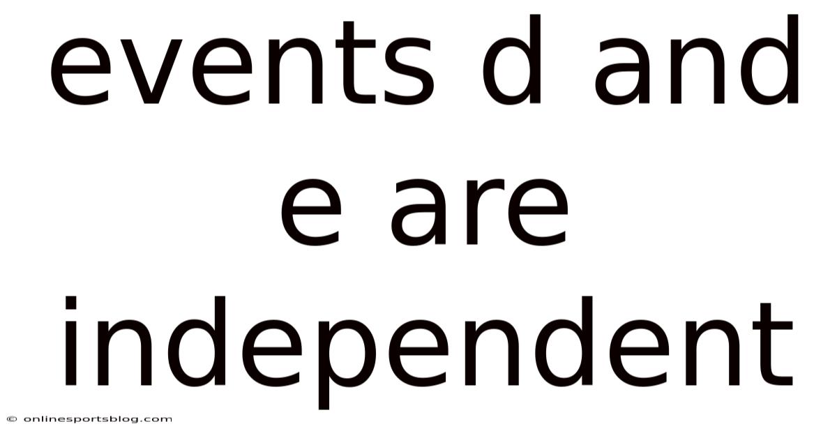 Events D and E represent important moments within a dynamic system, each carrying distinct implications that shape outcomes across various domains. Understanding this concept is crucial for grasping the underlying principles that govern unpredictability and causality. This article breaks down the nuances of events D and E, exploring their intrinsic properties, practical applications, and the broader significance of their distinct status as independent phenomena. By examining their roles, we uncover how such distinctions can simplify complexity, enhance predictability, and inform strategic decision-making. Whether in scientific research, economic analysis, or social interactions, their independence dictates how variables interact and influence one another. Now, in many contexts, events may appear interrelated, yet their separation reveals the foundational role of independence in defining their collective impact. The interplay between these events underscores the importance of precision in categorization, ensuring that their individual contributions are accurately recognized and respected within the framework they inhabit. Such clarity not only strengthens analytical rigor but also fosters a deeper appreciation for the subtle mechanics that drive observable results Easy to understand, harder to ignore..