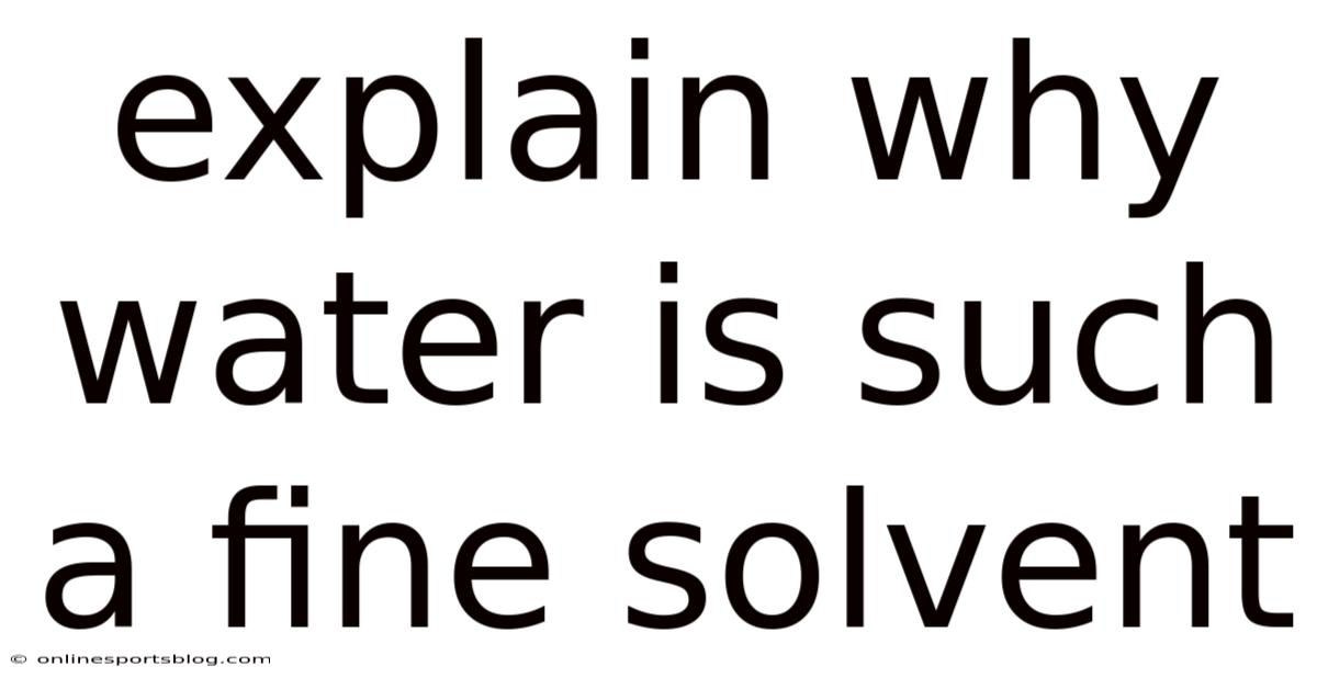Explain Why Water Is Such A Fine Solvent
