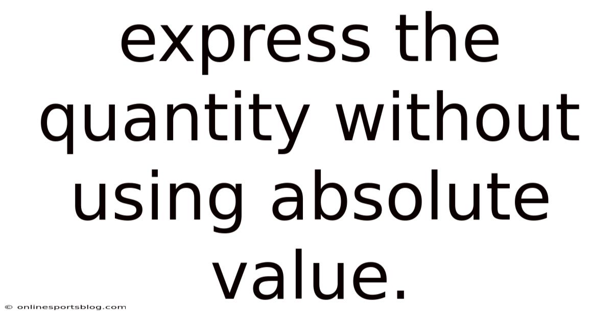 Absolute value is a mathematical concept that represents the distance of a number from zero on the number line, regardless of direction. Think about it: it is denoted by two vertical bars, such as |x|, and always results in a non-negative value. While absolute value is useful in many contexts, there are situations where expressing quantities without it becomes necessary or more elegant The details matter here..