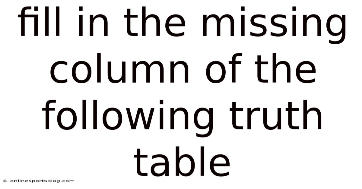 Truth tables serve as fundamental tools in logic, mathematics, and computer science, providing a systematic method to analyze the outcomes of logical expressions. When presented with a truth table containing a missing column, the challenge lies in determining the correct logical operation that would produce the given results. This article explores the process of identifying and filling in these missing columns, developing your analytical skills and deepening your understanding of logical relationships That's the whole idea..