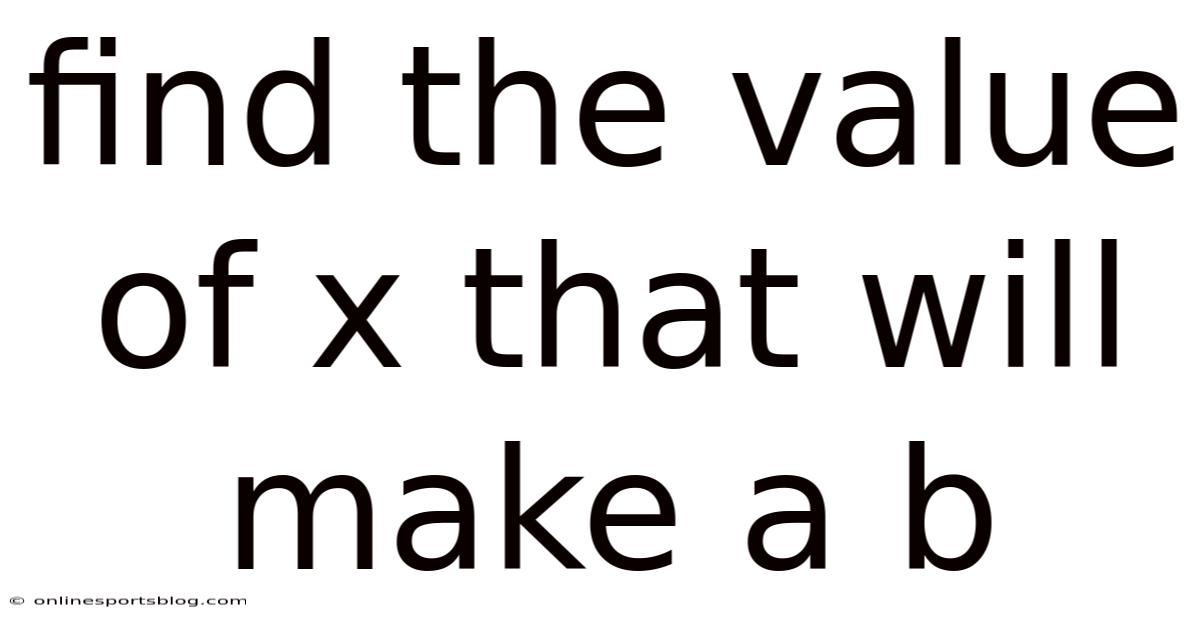 Learning how to find the value of x that will make a b is a foundational skill in algebra and geometry that bridges abstract equations with visual reasoning. Whether you are working with parallel lines, congruent angles, or algebraic expressions, determining the correct value of x ensures that two mathematical objects satisfy a specific relationship. This guide breaks down the exact steps, common problem types, and practical strategies you need to solve these questions confidently. By the end, you will understand not just how to calculate x, but why the process works and how it applies to broader mathematical thinking.