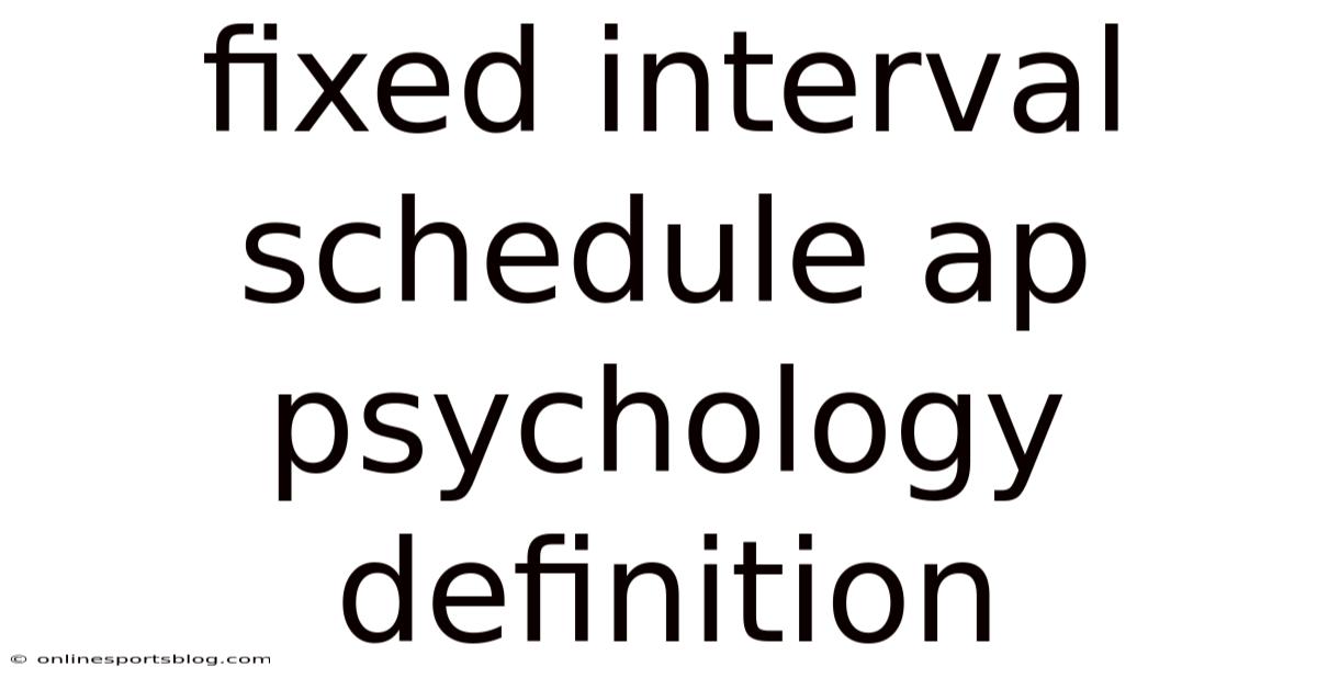 In AP Psychology, one of the foundational ideas students must grasp is the concept of a fixed interval schedule—a type of operant conditioning that governs how and when behaviors are rewarded. And understanding this schedule is essential not only for exam success but also for applying behavioral principles in everyday life. This article gets into the definition, mechanics, real‑world examples, scientific underpinnings, and practical implications of fixed interval schedules, ensuring you can explain the concept confidently and apply it effectively.