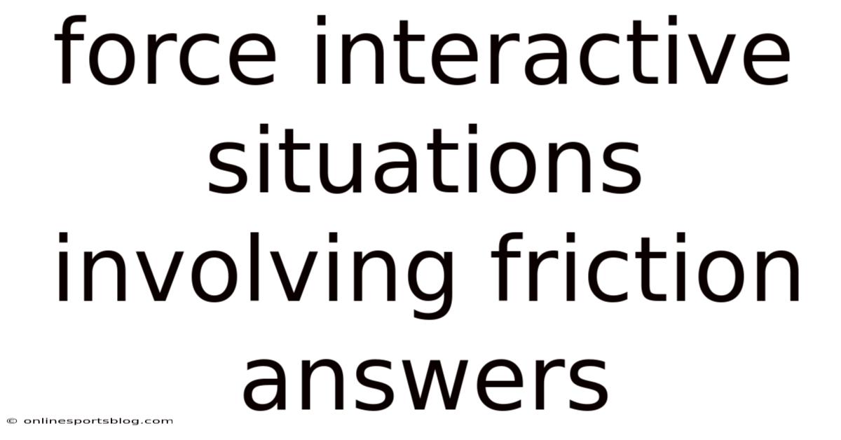 Force interactive situations involving friction answers explore how contact forces shape motion, stability, and energy exchange in everyday systems. That said, when surfaces meet and move relative to one another, friction becomes the invisible director that decides whether objects glide, grip, or stop. That said, understanding these interactions is not just about formulas and coefficients; it is about recognizing how forces converse with each other to create predictable outcomes in physics and engineering. From walking on pavement to designing braking systems, friction transforms abstract concepts into tangible results that influence safety, performance, and innovation.