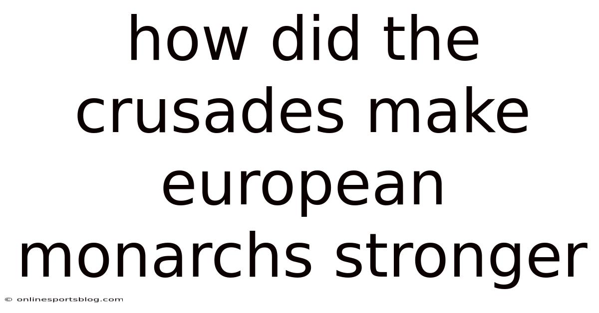 In sum, the answer to how did the crusades make European monarchs stronger lies