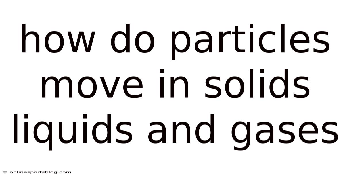 The seemingly simple question "how do particles move in solids, liquids, and gases?" unlocks a profound understanding of the physical world. But from the intense, fixed vibrations of solid particles to the sliding freedom of liquids and the rapid, random dance of gases, the motion of matter's fundamental building blocks dictates its observable properties. The Kinetic Molecular Theory provides the framework for this understanding, linking temperature, energy, and motion to the states of matter. Recognizing the invisible ballet of particles not only satisfies scientific curiosity but also underpins countless technologies and natural phenomena, from the engines we build to the weather patterns that shape our planet And it works..