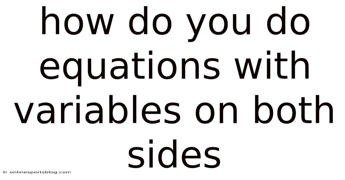 An equation with variables on both sides contains terms with the variable on the left side of the equal sign and on the right side as well. For example, 3x + 5 = 2x - 7 is a classic case where x appears on both sides. The goal when solving such equations is to get all terms containing the variable on one side of the equation and all constant terms on the other side, ultimately isolating the variable to find its value.