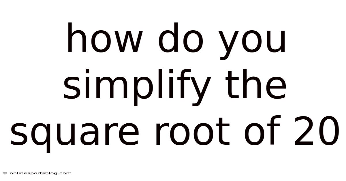 Simplifying the square root of 20 is a fundamental skill in algebra and number theory that transforms an unwieldy radical into its most efficient, canonical form. This process, known as expressing a radical in simplest radical form, is not merely an academic exercise; it is a crucial step for performing accurate calculations in geometry, physics, engineering, and advanced mathematics. At its heart, simplifying √20 means finding an equivalent expression that is mathematically identical but written with the smallest possible integer (or no integer) outside the radical sign. The simplified form of √20 is 2√5. This article will guide you through the precise, repeatable method to reach this result, explain the mathematical principles that make it work, and address common questions to solidify your understanding.