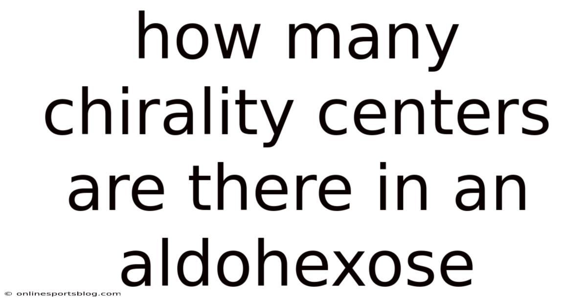 To determine the number of chirality centers in an aldohexose, it's essential to first understand its molecular structure. In practice, the carbon atoms are numbered from 1 to 6, with the aldehyde group (-CHO) located at carbon 1. An aldohexose has the general formula C₆H₁₂O₆. Carbon 2, 3, 4, and 5 each have a hydroxyl group (-OH) and a hydrogen atom attached, along with two other carbon atoms or a hydrogen, depending on their position. Carbon 6 is part of a CH₂OH group at the end of the chain That's the part that actually makes a difference. No workaround needed..