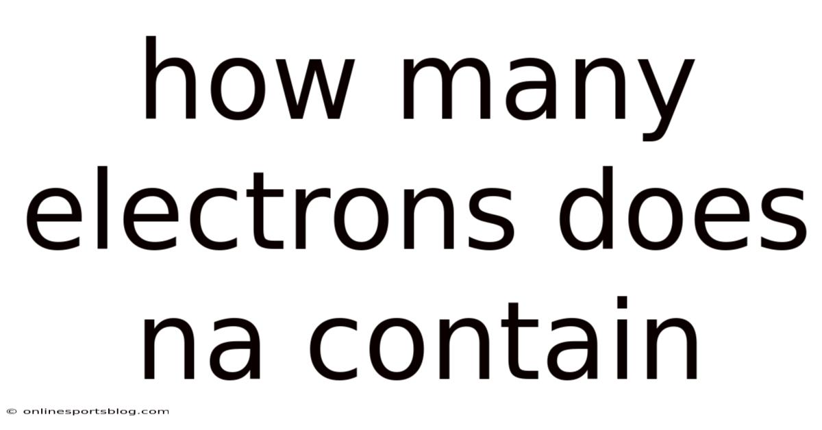 How many electrons does Na contain defines the atomic blueprint of sodium, an element that quietly powers biological rhythms, industrial processes, and everyday conveniences. From transmitting nerve impulses in the human body to producing vivid yellow light in street lamps, sodium relies on a precise electron arrangement to determine its behavior, bonding, and usefulness. Understanding how many electrons does Na contain is not just a matter of counting particles but of uncovering why this metal reacts with vigor, conducts electricity, and plays a vital role in chemistry and life Simple as that..