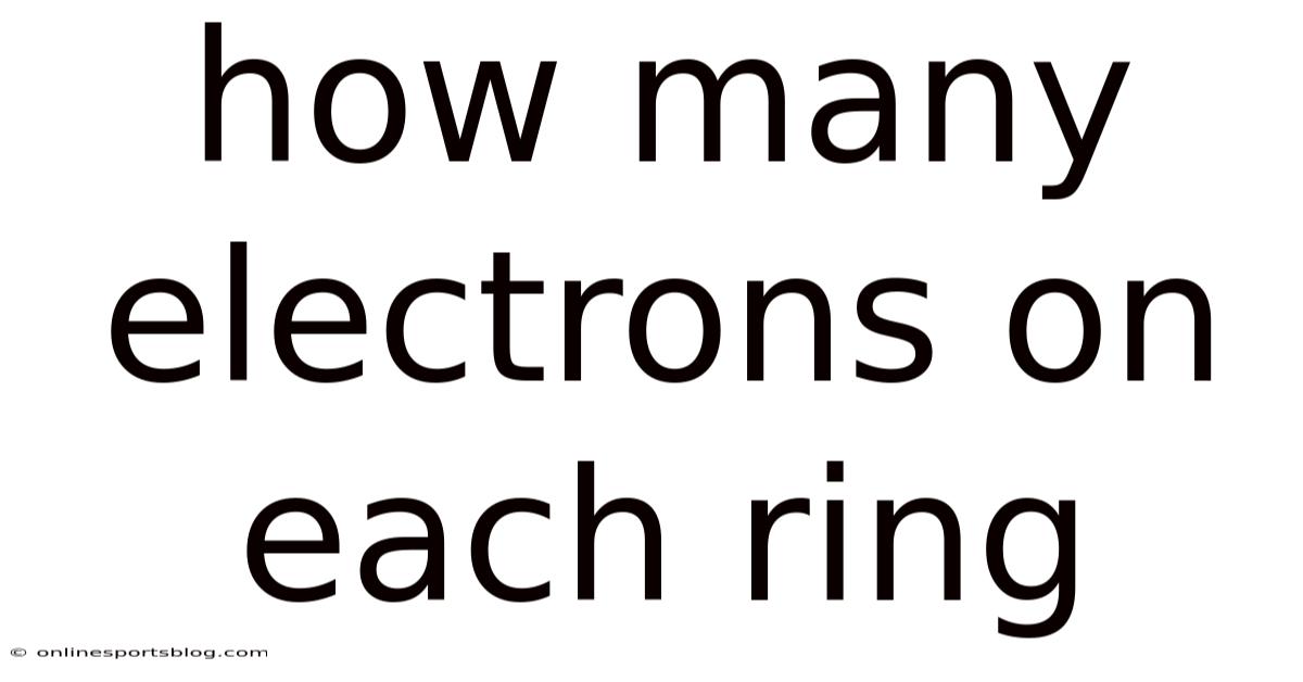 Understanding how electrons distribute themselves around an atomic nucleus is fundamental to chemistry and physics. Day to day, the question "how many electrons on each ring" refers to the arrangement of electrons in electron shells or energy levels—the circular pathways (often visualized as rings) that electrons occupy as they orbit around the nucleus of an atom. This arrangement determines an element's chemical properties, bonding behavior, and position on the periodic table That's the part that actually makes a difference..