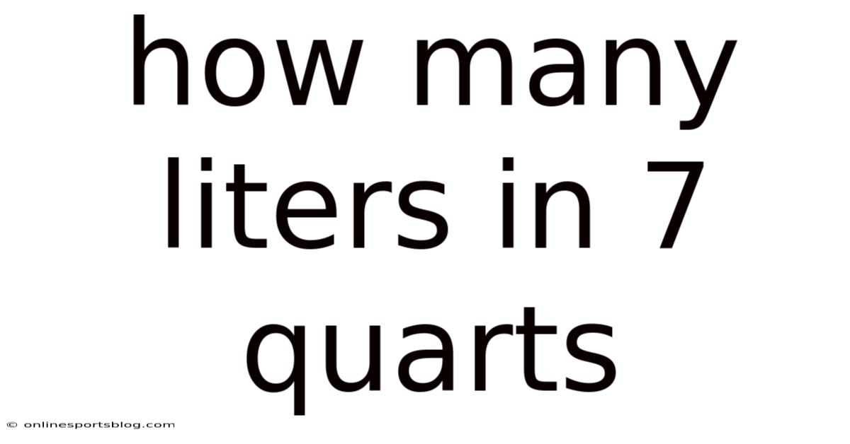 - Calculation: 7 quarts * 0.946352941 liters/quart = 6.624470587 liters.