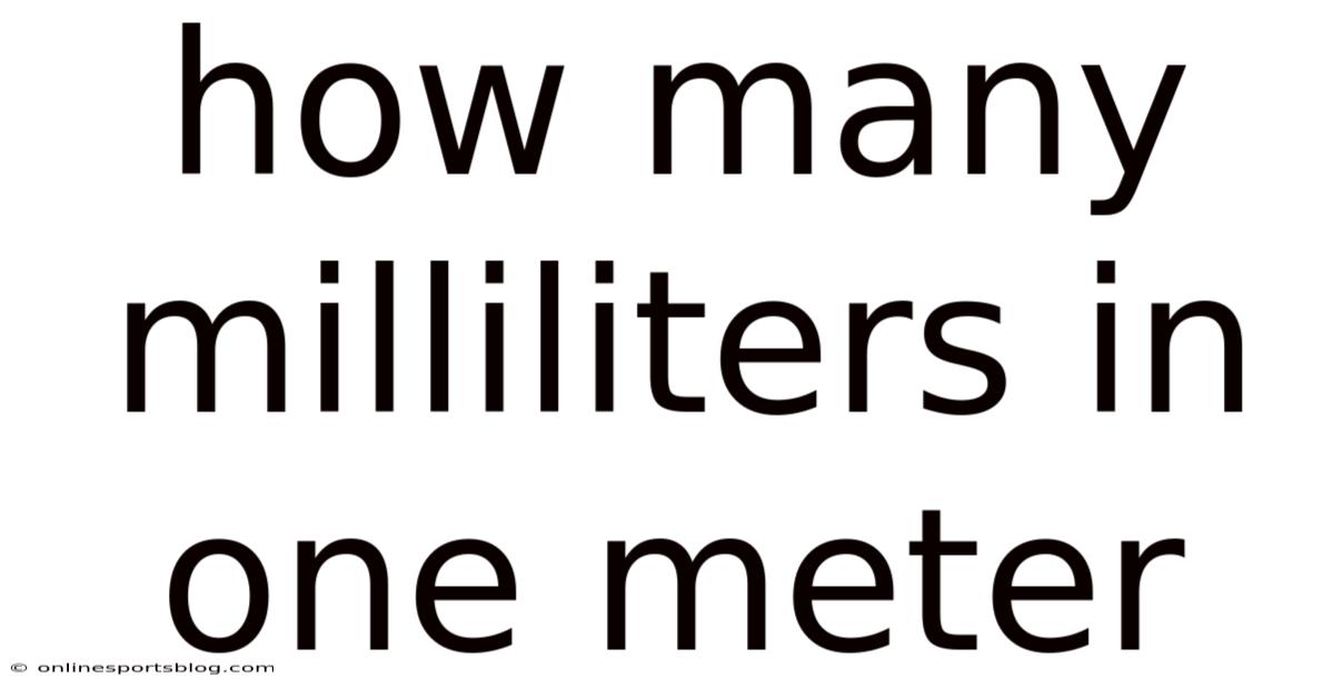 Understanding the relationshipbetween milliliters and meters requires clarifying the difference between volume and length, because how many milliliters in one meter is a question that mixes two distinct physical concepts. Milliliters measure the capacity of a three‑dimensional space, while meters measure a single straight‑line distance. In practice, to answer the question meaningfully, we must examine how these units interact when we consider volume derived from a length. This article will guide you through the logical steps, the underlying science, and common misconceptions, ensuring you leave with a clear, accurate answer and a solid grasp of the concepts involved.