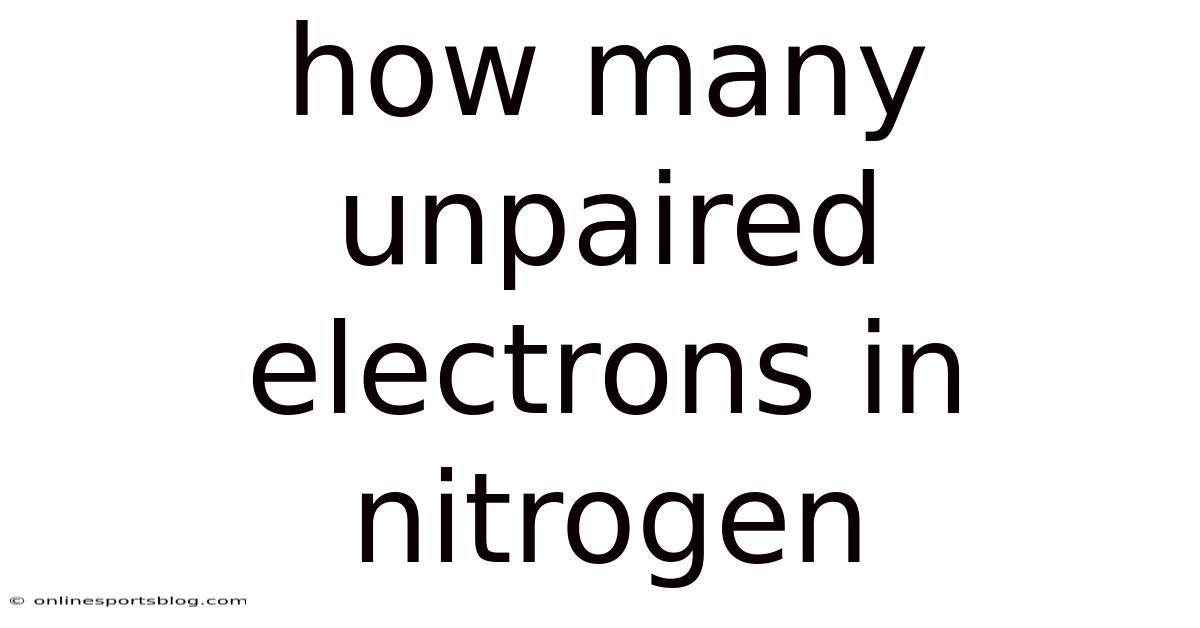 Nitrogen,a fundamental element in the periodic table, is key here in life as we know it, being a key component of amino acids, nucleic acids, and the atmosphere. Understanding its electron configuration is essential for grasping its chemical behavior and properties. A common question students and enthusiasts often ask is: how many unpaired electrons does nitrogen possess? This seemingly simple question digs into the heart of atomic structure and electron behavior, revealing fascinating insights into the nature of this vital element Small thing, real impact..
