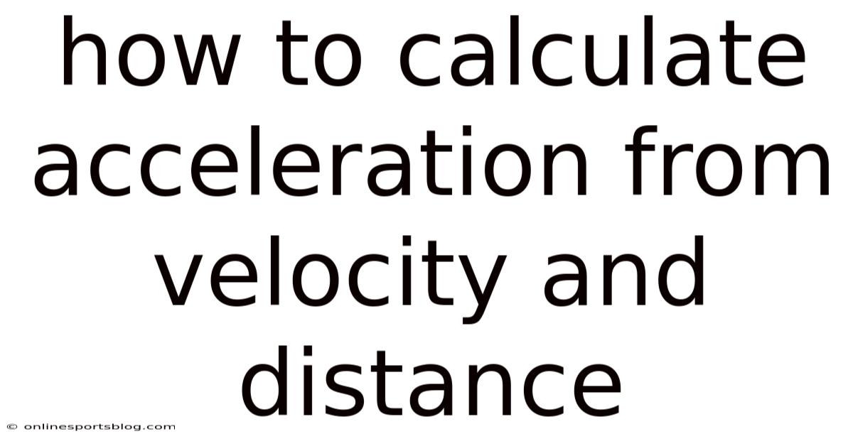 Acceleration is one of the fundamental concepts in physics that describes how quickly an object's velocity changes over time. Practically speaking, understanding how to calculate acceleration from velocity and distance is essential for students, engineers, and anyone interested in understanding the mechanics of motion. This calculation uses the relationship between an object's initial velocity, final velocity, and the distance it travels to determine its acceleration rate That's the part that actually makes a difference. Practical, not theoretical..