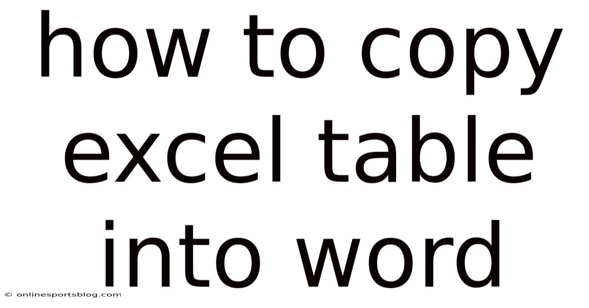 How To Copy Excel Table Into Word