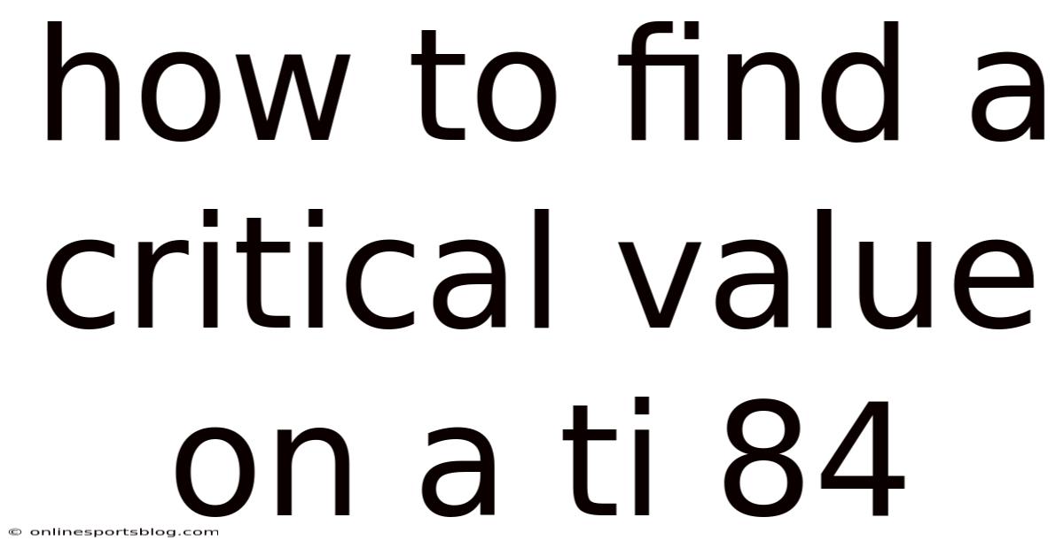 Understanding how to find a critical value on a TI-84 calculator is an essential skill for anyone working with statistics, from high school students to college researchers and professionals. This guide will demystify the process, providing clear, actionable steps for the most common scenarios using the TI-84’s built-in statistical functions. Day to day, critical values are the gatekeepers of hypothesis testing; they define the boundary between the rejection region and the non-rejection region. Consider this: when your test statistic crosses this boundary, you have sufficient evidence to reject the null hypothesis. Mastering these keystrokes will save you time, reduce errors from statistical tables, and deepen your conceptual understanding of significance testing.