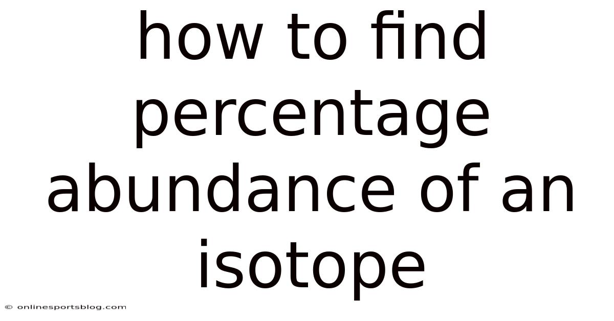 Understanding how to find the percentage abundance of an isotope is a fundamental skill in chemistry, physics, and environmental science. Whether you're studying geology, biology, or even astrophysics, knowing how to determine the proportion of different isotopes in a sample can tap into valuable insights about the natural world. This article will guide you through the process step by step, helping you grasp the concepts clearly and apply them effectively Not complicated — just consistent..