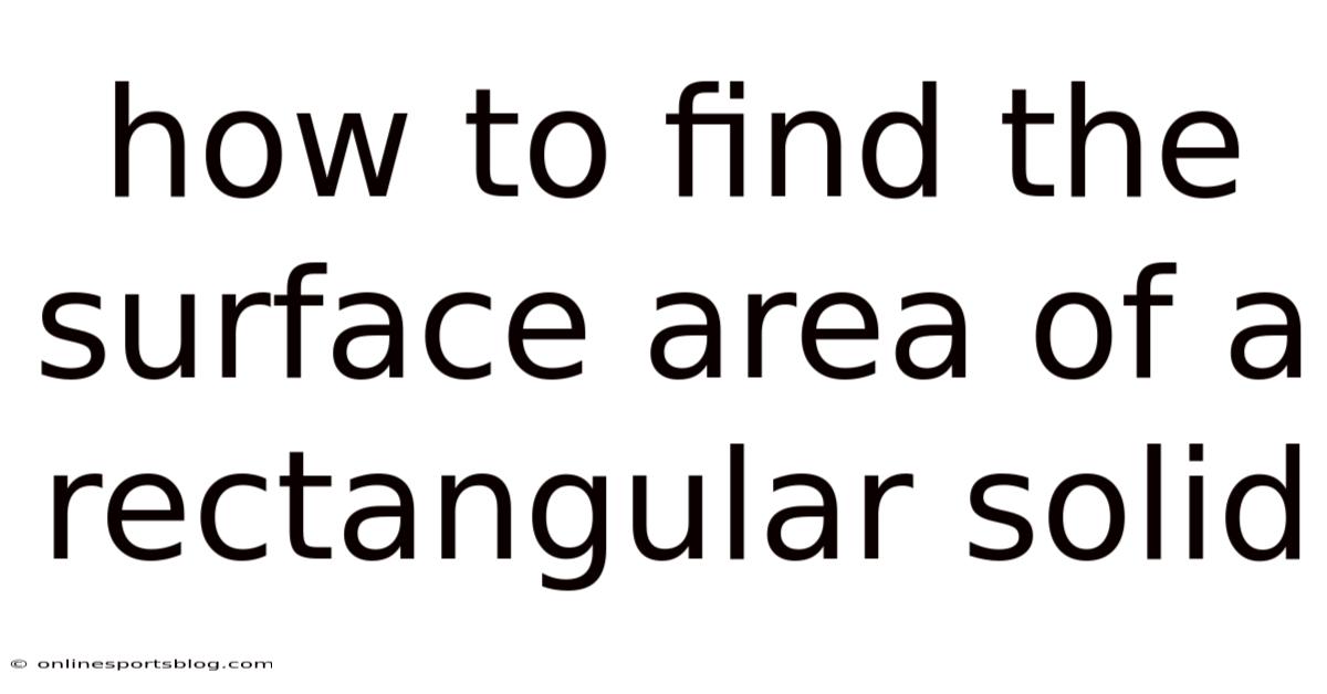 A rectangular solid, also known as a cuboid, is a three-dimensional shape with six rectangular faces. It is one of the most common geometric shapes found in everyday life, from boxes and books to buildings and containers. Understanding how to calculate its surface area is not only useful in academic settings but also in practical applications such as packaging design, construction, and even interior decorating But it adds up..
