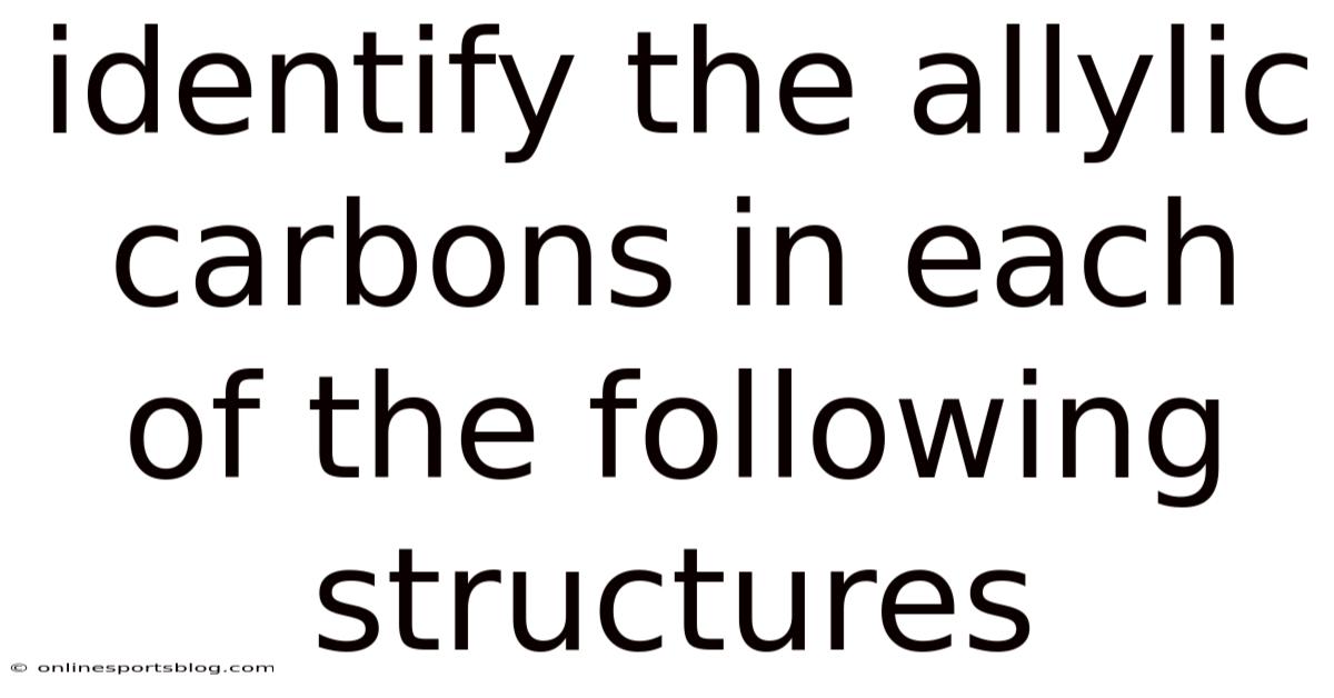 Learning how to identify the allylic carbons in each of the following structures is a foundational skill in organic chemistry that unlocks deeper understanding of molecular reactivity, reaction mechanisms, and synthetic pathways. Plus, whether you are analyzing simple alkenes or complex natural products, recognizing the allylic position allows you to predict where chemical transformations will occur most readily. This guide breaks down the concept into clear, actionable steps, explains the underlying science, and provides practical examples so you can confidently spot allylic carbons in any molecular framework.
