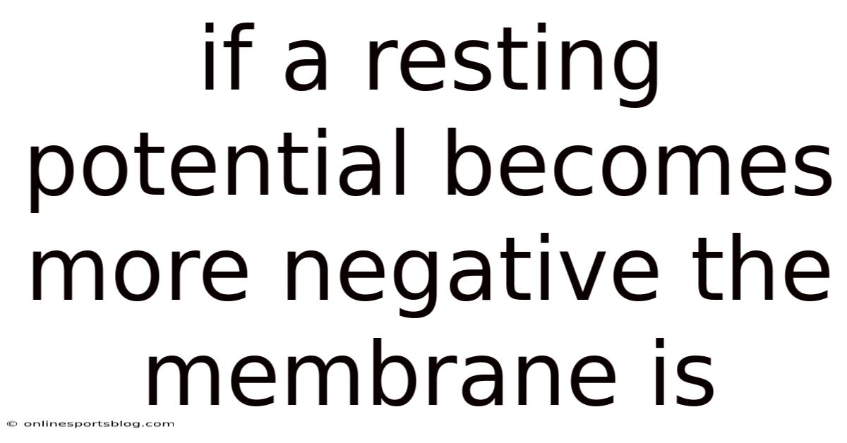 When a resting potential becomes more negative, the membrane is said to be hyperpolarized. Which means this fundamental concept in neurophysiology describes a change in the electrical state of a cell's membrane that plays crucial roles in neural signaling, muscle contraction, and various cellular processes. Understanding hyperpolarization is essential for grasping how cells communicate and respond to stimuli in both the nervous system and other tissues throughout the body Took long enough..