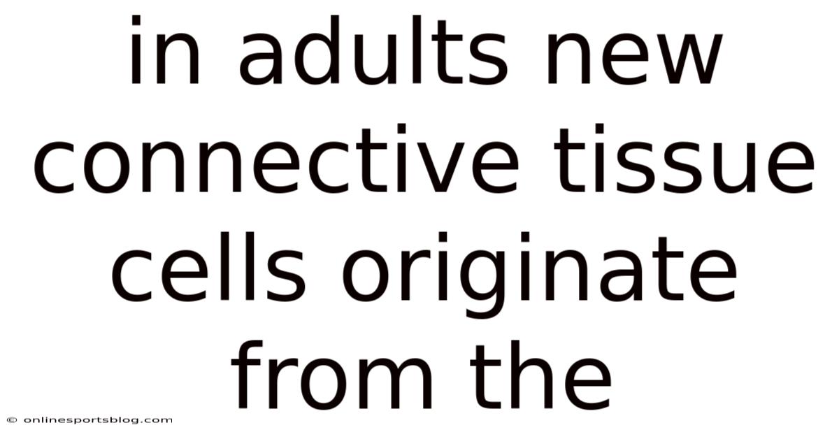 The origin of new connective tissue cells in adults is a topic of ongoing research, but one of the most well-established sources is the bone marrow. The bone marrow contains hematopoietic stem cells (HSCs), which primarily give rise to blood cells. However, a subset of these stem cells, known as mesenchymal stem cells (MSCs), can differentiate into various cell types, including those found in connective tissues.