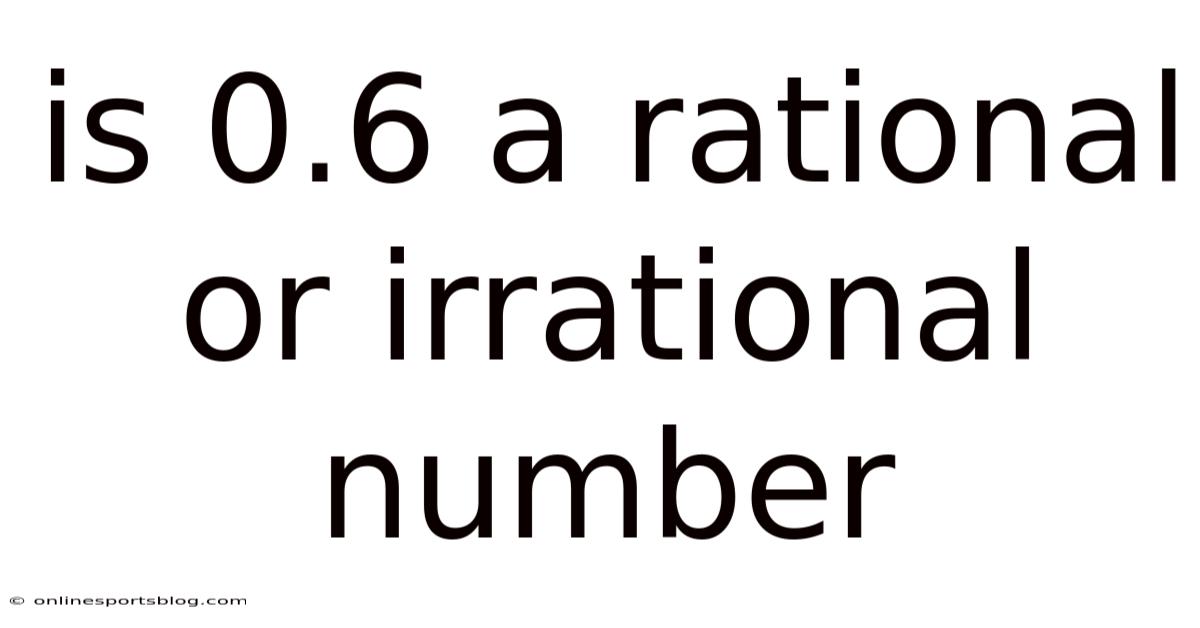When discussing numbers, one of the fundamental classifications is whether a number is rational or irrational. Consider this: to answer this, we need to explore the definitions of rational and irrational numbers, analyze the nature of 0. Think about it: this distinction is crucial in mathematics, as it determines how a number can be expressed, manipulated, and understood. The question of whether 0.6 is rational or irrational may seem simple at first glance, but it touches on core mathematical principles. 6, and apply logical reasoning to reach a conclusion That's the part that actually makes a difference. But it adds up..