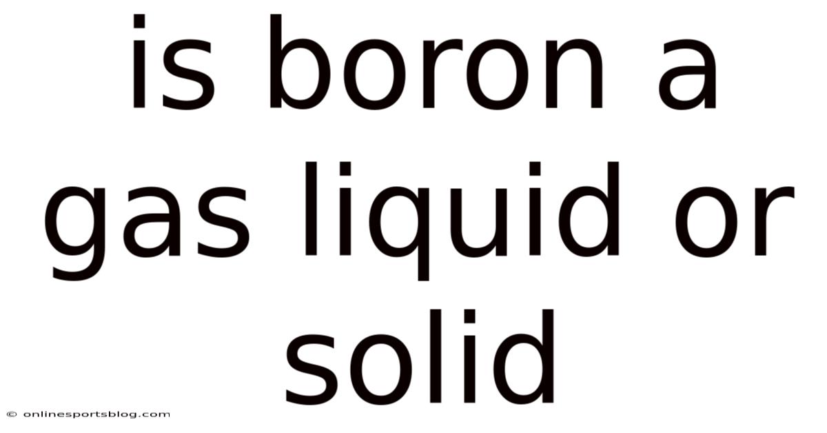 Boron is a solid at standard temperature and pressure. So this element, with the symbol B and atomic number 5, is classified as a metalloid, exhibiting properties of both metals and nonmetals. Its unique characteristics make it a subject of interest in chemistry, materials science, and industrial applications. Understanding the state of boron under different conditions provides insight into its behavior and utility in various fields.