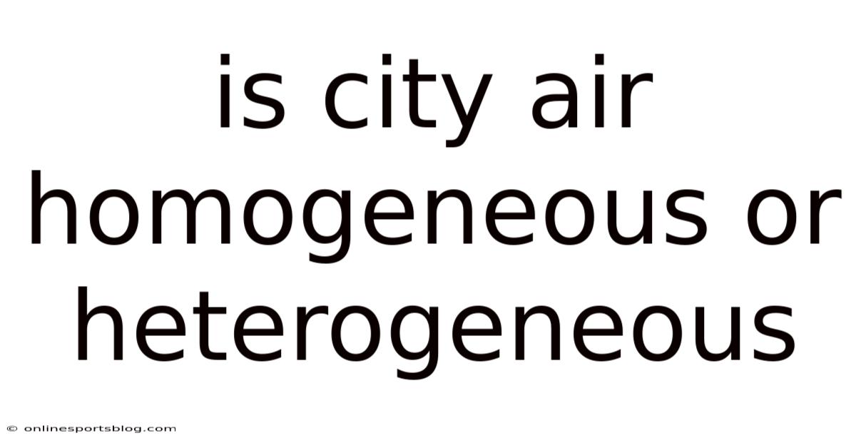 The urban atmosphere is a dynamic system where meteorological conditions, emission sources, and topography intersect. Day to day, while a simple textbook might depict air as a uniform medium, real‑world observations reveal a patchwork of micro‑climates. Is city air homogeneous or heterogeneous? The answer is that it is predominantly heterogeneous, with localized pockets of differing pollutant concentrations, temperature, and humidity. Understanding this variability is essential for accurate pollution forecasting, effective public health interventions, and sustainable city planning Practical, not theoretical..