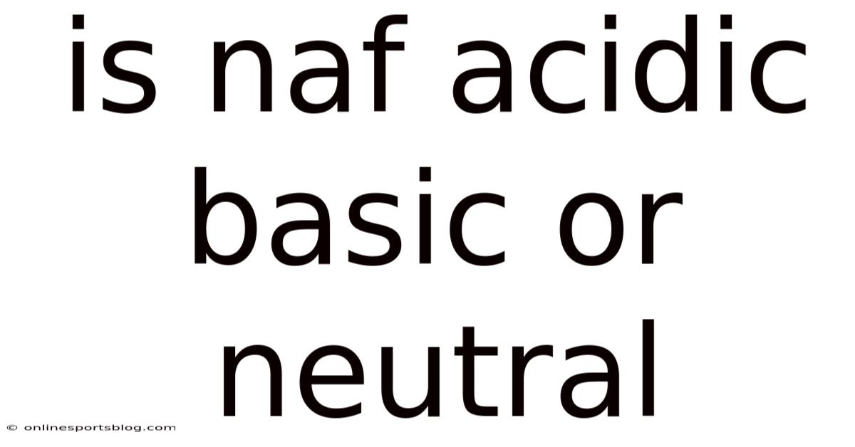 Is NAF acidic, basic, or neutral is a question that often arises when learners begin connecting chemical structure with solution behavior. That's why understanding whether sodium fluoride behaves as an acid, a base, or remains neutral in water requires looking beyond simple memorization and into ion interactions, equilibrium, and real-world implications. This topic bridges fundamental chemistry with practical applications, making it essential for students and professionals who want to predict reactivity and safety outcomes accurately.